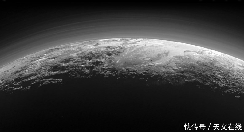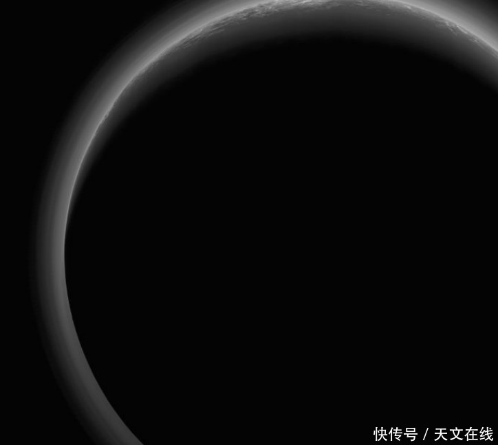 当冥王星被背光照射时,它的大气层便清晰可见,正如这张2015年来自新视野号的照片所显示的那样。当时它正加速离开一颗矮行星,进入更深的太空空间。
